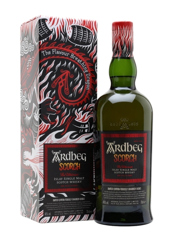 Một loại mạch nha đơn cất Ardbeg phiên bản giới hạn, Scorch được trưởng thành trong các thùng rượu bourbon cũ được đốt cháy mạnh, tạo ra hương thơm của quả phỉ, hạt hồi, khói dầu, thảo mộc trong vườn, thông và thì là tràn ngập mũi. Vòm miệng cung cấp các nốt hương của kẹo luộc, hắc ín, cam thảo, đinh hương, hạt tiêu, khói than bùn và gỗ đàn hương.