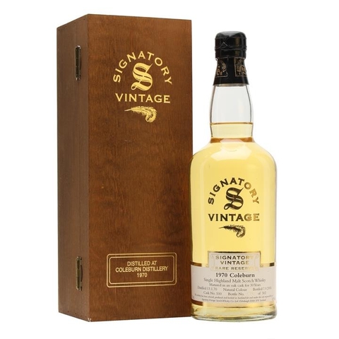 A 1970 vintage Coleburn from independent bottler Signatory. Distilled on 13 January, it was aged for 30 years before 302 bottles were yielded on 7 September 2000.
