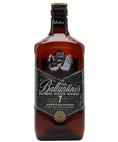 Rượu Ballantine's 7 Năm American Barrel X RZA Limited Edition Design là hiện thân của rượu whisky Scotch kết hợp với phong cách Mỹ. Nhãn hiệu có họa tiết phức tạp được tạo ra từ những từ viết tay trong bài thơ của RZA, hoàn chỉnh với đôi bàn tay mang tính biểu tượng của Wu-Tang Clan.