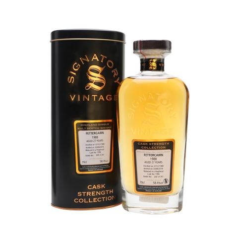 This 1988 vintage Fettercairn has been aged for 27 years in a single hogsheqd. Showing off the distillery's natural character, this was bottled by indie bottler Signatory as part of the Cask Strength Collection on 3 June 2016.