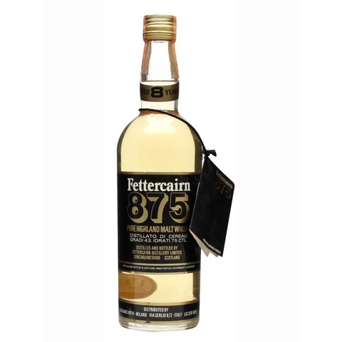 A very 1970s bottle of Fettercairn produced for the Itlaian market. Why '875' you may ask? It's due to it being 8 years old and 75 UK proof.
