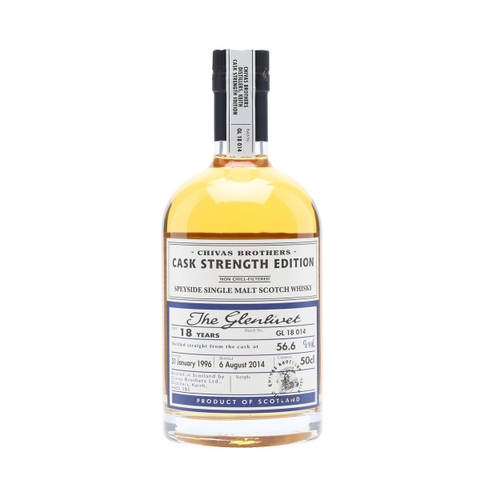 An impressively high-strength 18-year-old Glenlivet from the 1996 vintage. Bottled in August 2014, these bottlings are normally reserved only for the distillery shop.