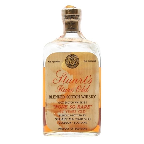 An old 4/5 quart bottle of Stuart's Rare Blended Scotch Whisky, bottled at 12 years of age by Stuart McNair of Glasgow. We estimate this bottle dates from the 1940s.