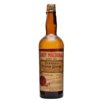 An old bottle of Sandy Macdonald blended Scotch whisky. We estimate that this was bottled sometime in the 1950s. Please be advised that the fill level on this item is low (as pictured)