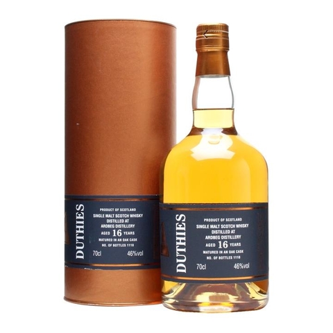A 16 year old independent bottling of Ardbeg, bottled by Duthies, one of the labels produced by Cadenheads.