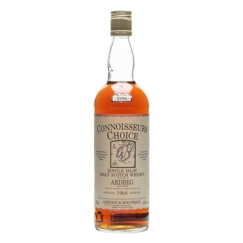 An incrediblyrare Ardbeg from Gordon & Macphail's Connoisseurs Choice series. This was distilled nearly five decades ago back in 1964, when the distillery was still very old-fashioned, using direct fired stills and its own floor maltings, and bottled in 1996.