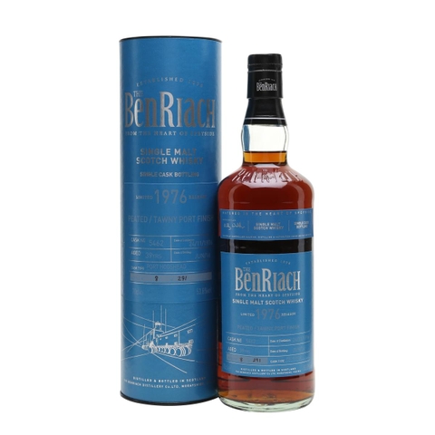 Aged for 39 years, this Benriach was finished in a tawny-port hogshead. This 1976 vintage whisky has notes of tropical and fruits with sweet smoke.