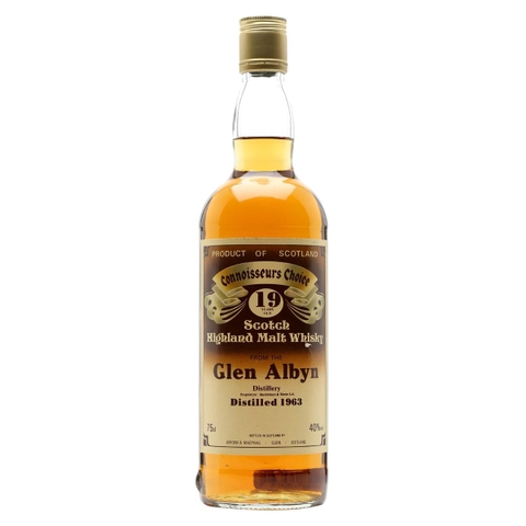 A brown labelled Connoisseurs Choice bottling of Glen Albyn, distilled in 1963 and bottled 19 years later.