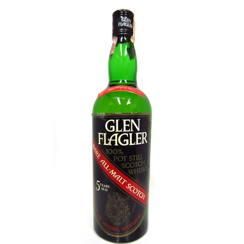 A 1970s bottling of 5 year old whisky from the incredibly rare Glen Flagler. It was not actually a distillery, but the name of the whisky produced from stills at the Moffat Grain Distillery in Airdrie. Only produced for 21 years between 1964 and 1985, Glen Flagler bottlings are highly collectable.