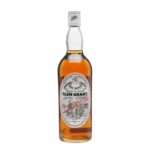 A 1969 vintage Glen Grant 5 Year Old. There are many independent bottlings of Glen Grant at ages of well over 30 years, but distillery bottlings rarely get past 12 years old. This dates from a time when five-year-old bottlings were prevalent, in stark contrast to today. This was produced at a time when Gordon & MacPhail was the distillery's official bottler.