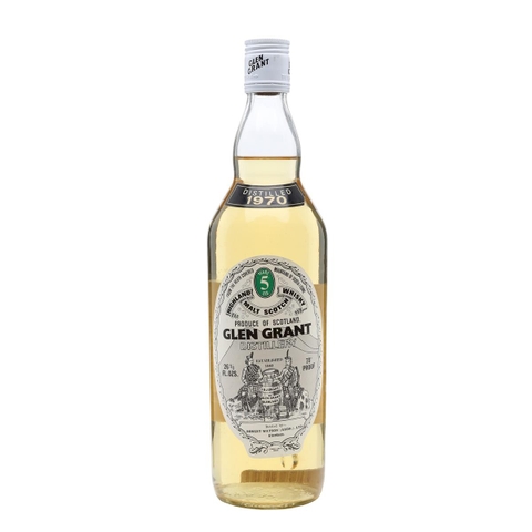 A 1970 vintage Glen Grant 5 Year Old. There are many independent bottlings of Glen Grant at ages of well over 30 years, but distillery bottlings rarely get past 12 years old. This dates from a time when five-year-old bottlings were prevalent, in stark contrast to today.
