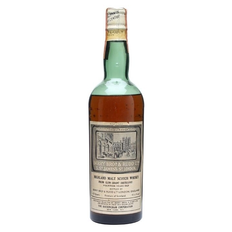 A very old bottle of Glen Grant bottled at 14 years of age by posh London wine merchants Berry Brothers & Rudd. We estimate this was bottled in the 1950s for the American market and imported by the Buckingham Corporation, who were instrumental in Berrys' brand Cutty Sark's success in the US.