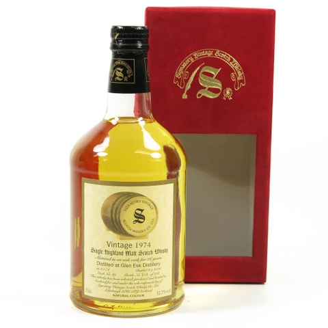 A 1974 vintage Glen Esk from independent bottler Signatory. Distilled on 4 January, it was aged for 27 years, yielding 282 bottles on 10 May 2001.