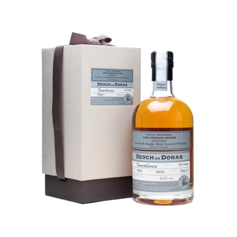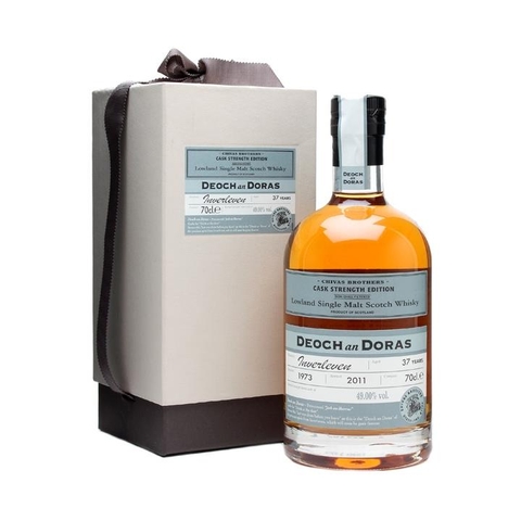 A 1973 vintage whisky from Inverleven, a malt distillery that operated from within the Dumbarton grain distillery complex until 1991. This is part of Chivas Brothers's Deoch an Doras series, roughly translated as 'One for the road', and was bottled in 2011 at 37 years old.