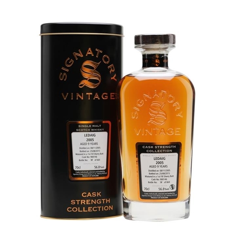 A nine-year-old Ledaig from Signatory as part of the Cask Strength Collection. Distilled in 2005, this peated whisky was aged in a first-fill sherry butt, a combination that has produced superb indie bottlings.