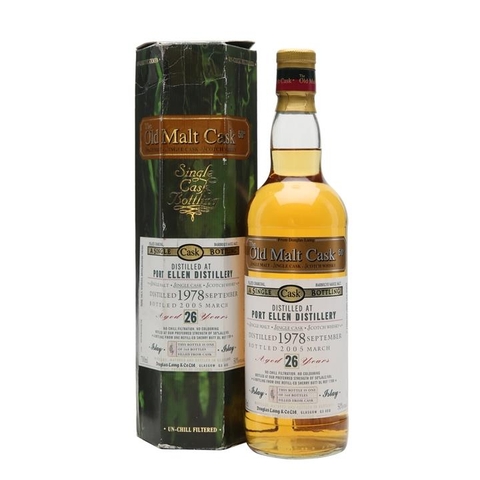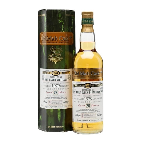 A 1979 vintage Port Ellen released by independent bottlers Douglas Laing as part of their Old Malt Cask series. Distilled in February, it was aged for 27 years before being bottled in September 2007.