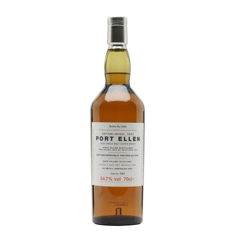 A very rare and special bottle of Port Ellen 1981, distilled in 1981, bottled for the 2008 Islay festival and originally only available at the festival. A legendary bottling currently averaging a score of 92/100 from the Malt Maniacs.