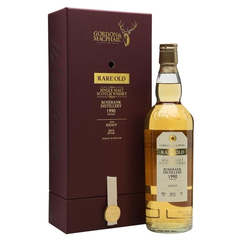 A 1989 vintage Rosebank released by independent bottlers Gordon & Macphail as part of their Rare Old series of whiskies. The distillery closed in 1993 and bottlings are now increasingly sought-after.