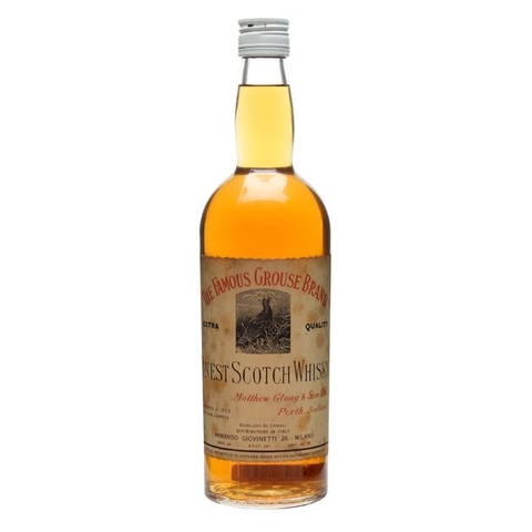 An old bottle of 'extra quality' Famous Grouse blended Scotch Whisky. We estimate this bottle dates from the 1960s and was bottled for Italian distributors Armando Giovinetti of Milan.