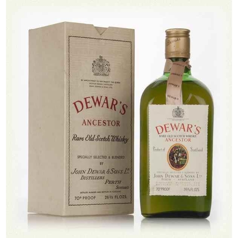 An old bottle ofDewar's Ancestor. One of the premium blends in Dewar's range, this contained a fair proportion of long-aged whisky. We estimate this bottle dates from the 1980s.
